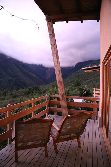 Three meals a day are included in the stay and they can provide lunch boxes for tours to Kuelap or the Leymebamba Museum. The breakfast included a large variety of food including yogurt, granola, fruit salad, bread with butter and jam, banana bread and eggs on request. During my stay, dinner was pasta with vegetables and apple pie for dessert and lunch was lomo, quiche, yuca, potatoes and sorbet for dessert. The meals include a beer or glass of wine. All meals are served outside as long as it is not raining, breakfast and dinner on a deck with a waterfall view and lunch down below the cabin on a large shared picnic bench, also with a gorgeous view.