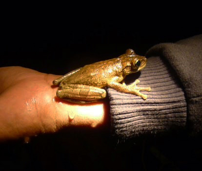 Later, we had the chance to go out in the dark to search for caimans, the crocodile-like reptiles of the Amazon that are most easily spotted at night. On our adventure out in the dark, we spotted white boa hanging from a tree just above a small bird that was asleep and about to become its dinner. Being out in the jungle in the night, when many of the nocturnal animals become active, was amazing. You hear all of the sounds of life flourishing there.