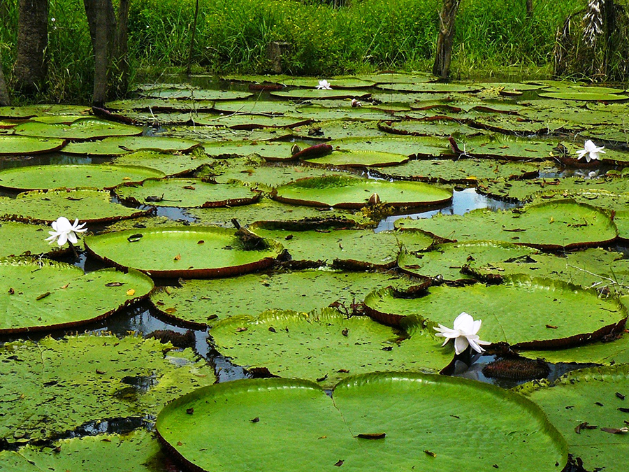 In the morning after breakfast, we went on the skiffs along the Yarapa River. It was much hotter and very sunny, so I wore a hat to keep my face covered—a necessary accessory in the Amazon! Today we spotted monkeys on the river bank and one cheeky Capuchin monkey decided to jump on board our skiff, trying to pick through our bags in search of a snack! He was cute but a pain to get back on shore. We also saw people along the river bank and docked to go visit a local village where we saw the giant water lilies, Victoria Regia, which are the world’s largest aquatic plants. Some locals were selling handicrafts, so some of us bought souvenirs before we returned to the skiff and went back to the Aria for lunch.