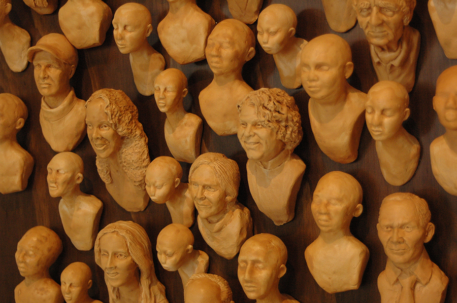 The most talked about piece of the evening was titled Vi-Gente, which is made up of mini-busts of many well-known Peruvians, who are currently contributing to the wave of Peruvian cultural pride that Puchi has noted upon her return. People at the inauguration crowded around it, identifying the familiar faces, which sparked further conversation. In addition to these well-known Peruvians, anonymous faces were included, the unknown people living in Peru today who are contributing to the country’s progress and those who will be known in the future.