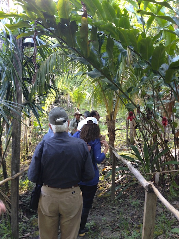 After our delicious breakfast we went for a gentle hike to explore this bit of the forest, which becomes seasonally flooded. We saw a wide variety of trees, and our guide Jesus, a native from the Bora ethnic community north of Iquitos, interpreted the forest beautifully for us. In order to have an enriching experience in the forest, a good guide is essential, and Jesus definitely accomplished that. We learned about the symbiosis of trees, vines and ants, for example, and the life of bullet ants, leaf cutter ants and their reproductive process. The walk we did today is not possible during the rainy season, because the water can rise as high as 12 metres, so the visits are mainly boat- and skiff-based during that time. After the visit, we had a wonderful swim in the river and then went back to our boat.