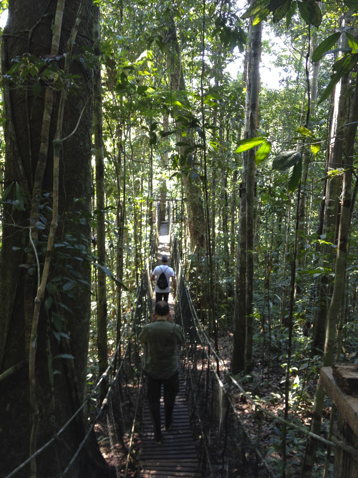 During the evening and into the night the Delfin I continued to cruise upriver on the Marañón, until we reached the confluence with the Rio Tigre, an important river and one of the main tributaries of the Marañón. Near there, there is the private reserve of San Regis, with an 8-bridge canopy walkway stretching a little over 1 km and with an average height of 30-40 metres. This was an unforgettable experience and very much worthwhile. We then took an hour walk on Terra Firme (forest that never floods) trails, after which we headed back to our floating home for a rest.