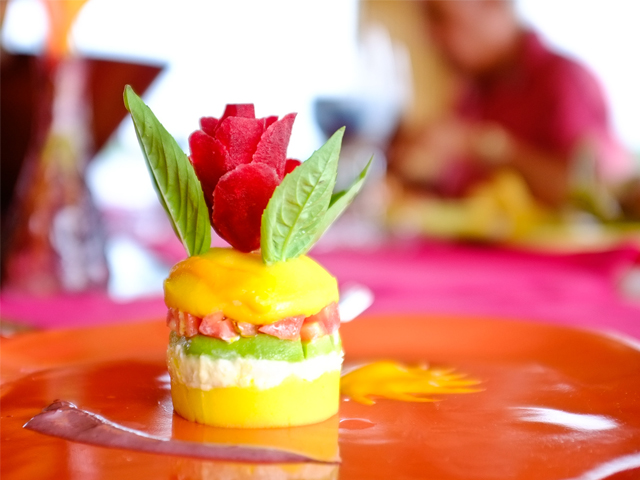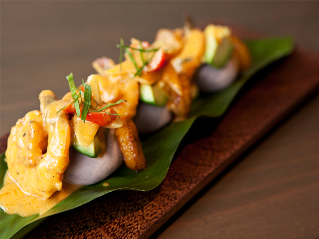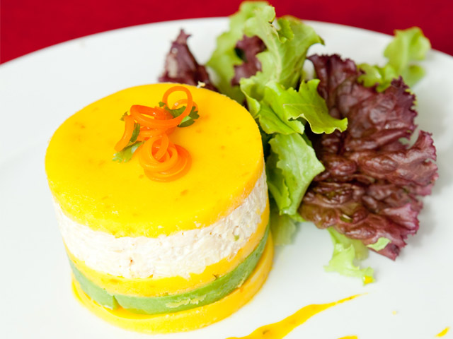 Taking a taste leads to more surprises. Causa is served cold, and the layers are flavoured with delicate hints of lime and aji amarillo – the delightfully flavoursome orange chilli pepper that is ubiquitous to Peruvian cuisine. The result is light, refreshingly lifting flavours. Nothing of the heaviness or blandness you might expect from mashed potatoes. A bite that cuts through the layers, results in an explosion of flavours in your mouth.