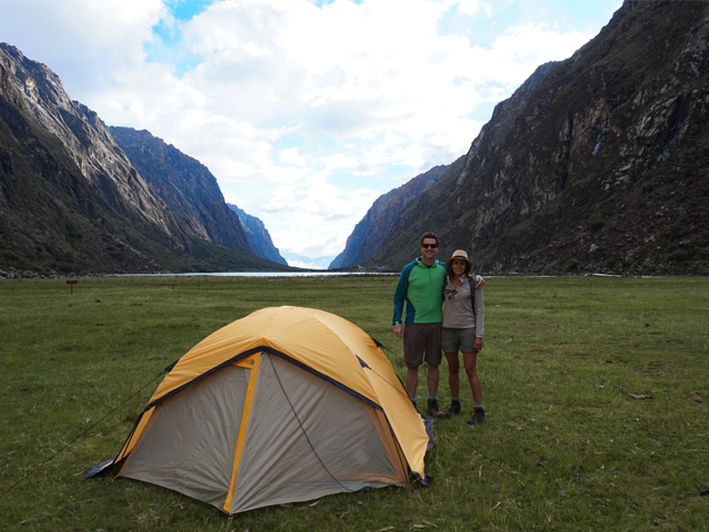 Later that afternoon we arrived at Laguna Chinancocha. Accessible by road it was full of visitors snapping selfies during Semana Santa, Peruvian national holidays for Easter which sees an influx of domestic tourists. We took a few photos, marveling at the beautiful turquoise water and dramatic glacier backdrop, and then continued on to our campsite beside the next lake along the valley – Laguna Orconcocha.