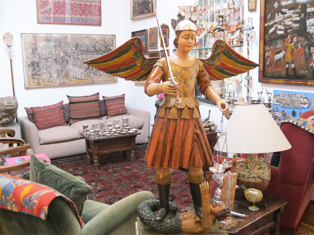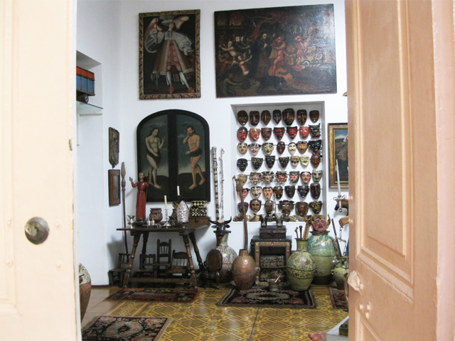 I then walked a few blocks to my last stop – the incredible art collection of their father, the late Jaime Liébana, which is cited as one of the most important collections of traditional Peruvian art. Jaime’s gallery is the manifestation of his life-long love of collecting with each room full of treasures to discover and peruse – huge tapestries, painted ceremonial masks, intricate silver ornaments, traditional pottery and much more. It is located in his family’s private Barranco home, and is part museum and part shop where both of the brothers’ art is sold as well as their hand crafted furniture.
