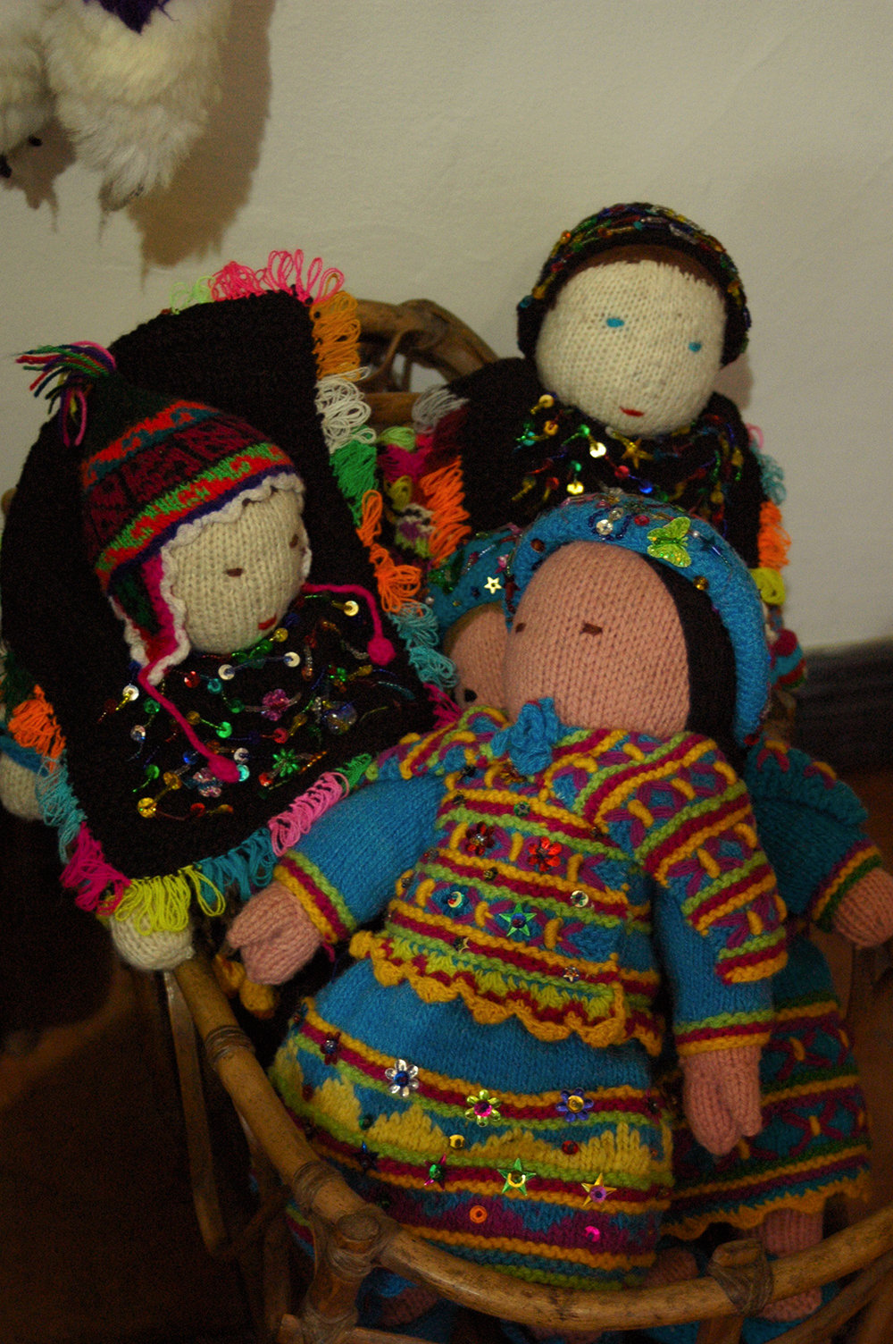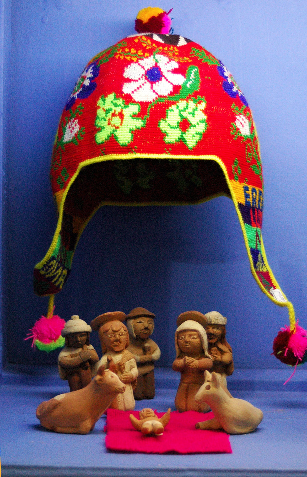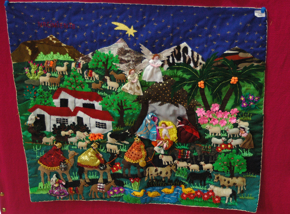 Most notably, the Christmas exhibit displays handmade nativity scenes from all different regions and cultures in Peru, from the coast to the sierra and the selva (rainforest). Each set is completely unique and representative of the region. Even for those who do not celebrate Christmas, the artistry is something to marvel at; the various different scenes and religious figures are all distinct and crafted with care. There are also several intricate retablos of the nativity scene that are a typical adornment in Peruvian homes at Christmas time, as well as a few brightly colored arpilleras, which are appliqued textile pictures. And for children on your Christmas shopping list, Mari recently received a variety of handmade dolls that are made of soft wool and are rather adorable.