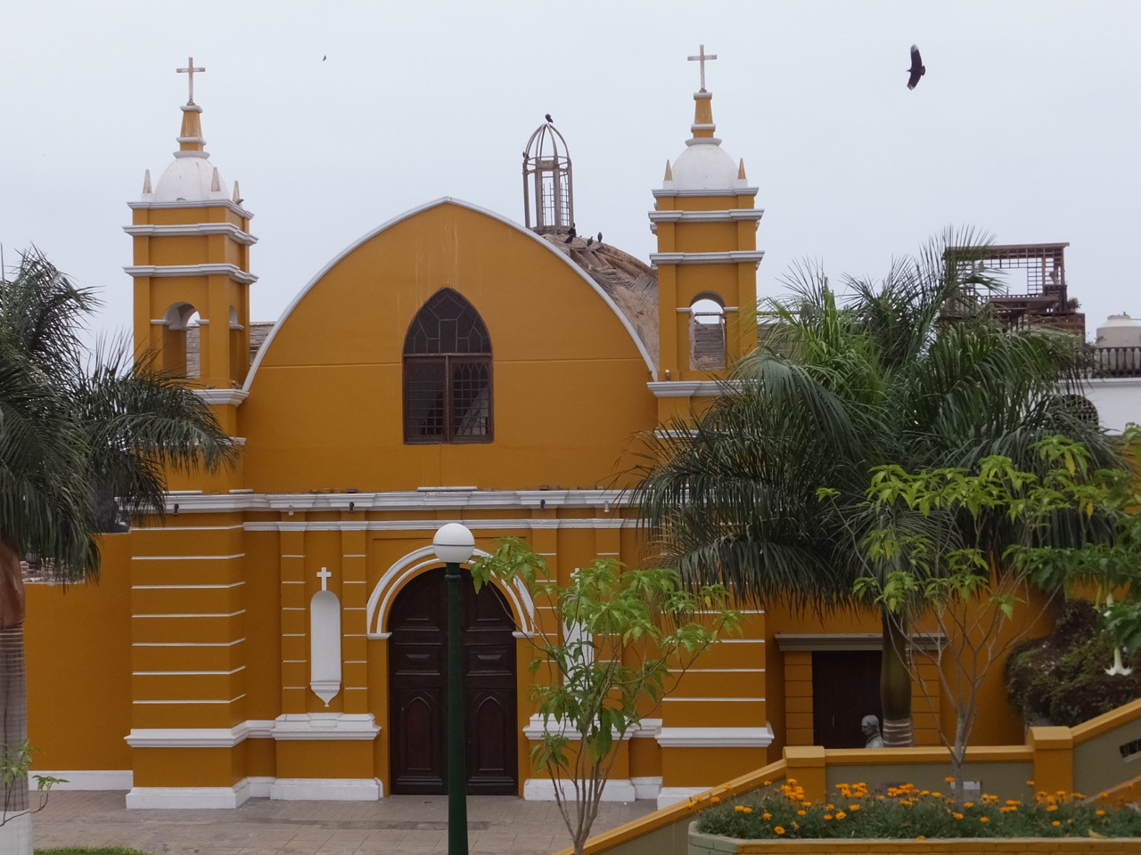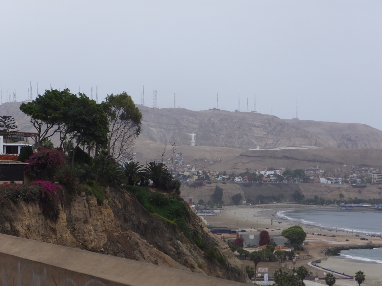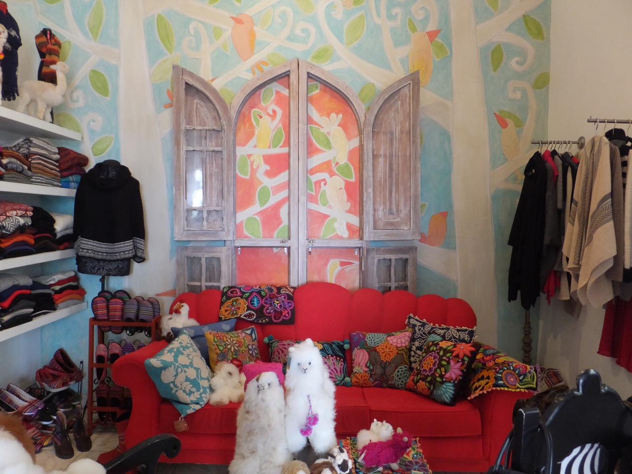 We crossed over into Barranco and made our way to Portico, a lovely shop with quality Peruvian gifts. Portico is not a usual stop on the Southern Lima Beat route, but one of the members in our group wanted to pop in as we were passing and our flexible guides were more than happy to oblige. The shop specialized the kind of souvenirs people imagine you would bring back from Peru instead of the horribly cheap mass-produced tchotchkes that so often find their way into travelers’ suitcases. After ooing and aahing at the fine alpaca sweaters and hand-embroidered shams, we passed some of the classic churches in Barranco, as well as the Puente de Suspiros, or Bridge of Sighs. We also stopped in a hidden alcove behind an apartment complex that looked out onto the beach, sea wall, and the Christ statue. The houses and the gardens nearby looked like they were literally hanging on the cliffs. We chatted about how when earthquakes happen, these properties run the risk of toppling into the sea below — hardly a safe investment, it seems.