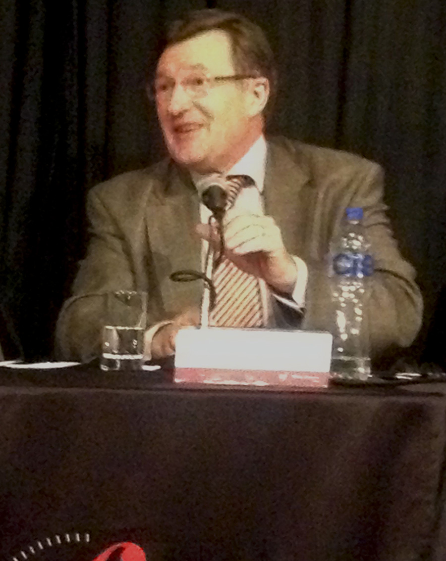 After tasting the offerings in the courtyard, we entered the auditorium to get seats for the conference. Photographers snapped photos of the attendees as they entered, illuminating the room with the flash. By the time the talk was to begin the auditorium was packed, and a hum of chatter (a mix of Spanish and French) welcomed the speakers as they entered and took their seats on the platform at the front.