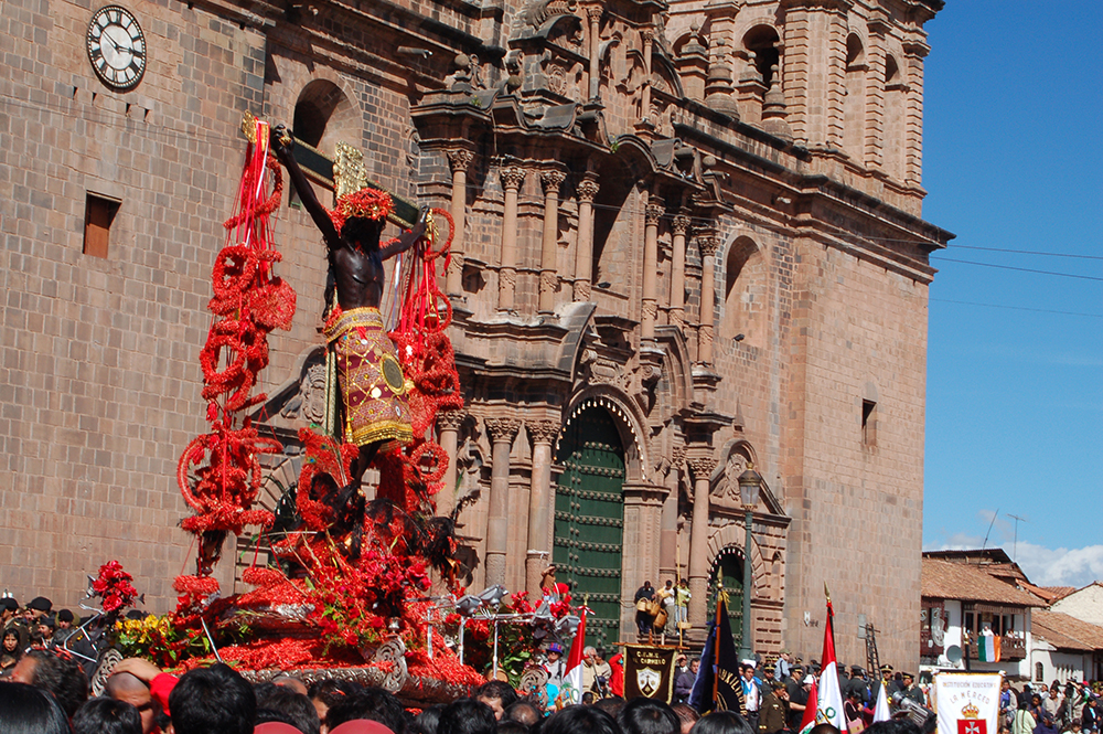 In a country with a depth and complexity of history as Peru, ancient and deep-rooted religious beliefs vie with the official national religion of Catholicism. Add to this the dramatic physical and political impacts of the great earthquake of 1650 and the invasion of the Spanish Conquistadors – and you have the makings of a fantastic spiritual outpouring. Such spirituality manifests every year on the last Monday of March, when the people of Cusco depart from their daily lives for the procession of Señor de los Temblores (Lord of the Earthquakes).