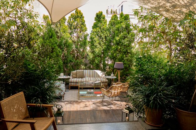 The monochrome tiled hallway of the ground floor leads through to a cozy salon and terraced garden lounge, where guests will find comfortable armchairs and cushioned seating set amongst linen canopies and blossoming trees. The House Kitchen can also be found on the ground floor of this luxury Lima hotel, which is always open for tea or coffee, as well as freshly baked sweet and savory delights. For alcoholic tipples, Atemporal operates an Honesty Bar, where guests can choose from a selection of premium wine, beer, and spirits.