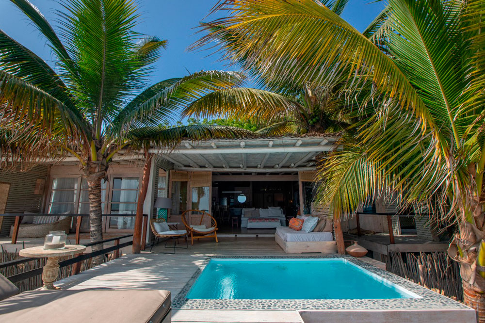 Outside, there is a large veranda with its own private pool and comfortable sun loungers in which to relax. Despite the beachfront location, guests can enjoy complete privacy thanks to the bamboo cladding and lush green foliage that surrounds the decking. Casa Kichic also has access to Las Pocitas beach via a few steps leading down to a private gate, opening directly onto the sand.