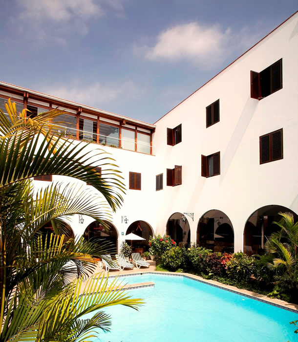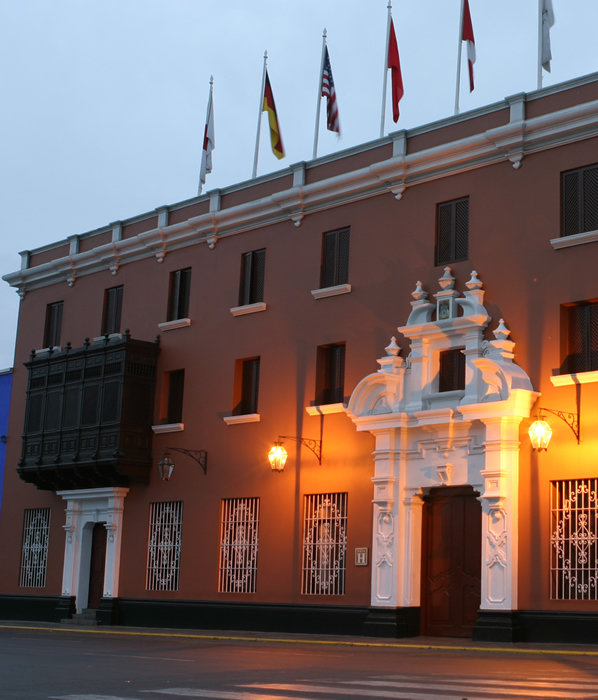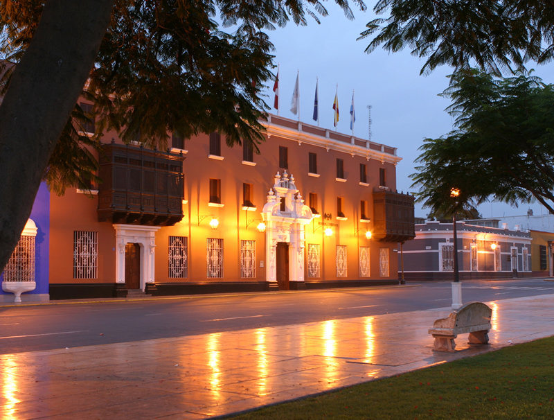 This fully renovated, charming Spanish colonial mansion is strategically located on the Plaza de Armas, the main square in Trujillo, and overlooks the cathedral and other beautiful examples of colonial architecture. However, guests should be aware that with its location comes the noise and crowds associated with a city center. Situated only ten minutes from Chan Chan, the pre-Incan adobe city, and the Temples of the Sun and the Moon on the Moche Route, the Costa del Sol hotel is in a great location for guests interested in visiting these archeological sites.