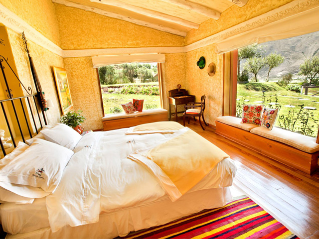 The hotel has seven suites with colonial architecture and decorated with warm and colourful Andean tones. The rooms are spacious with large windows to maximize the stunning views over the majestic mountains. The property has beautiful rose gardens with a gazeebo, a swimming pool and hammocks to relax in.