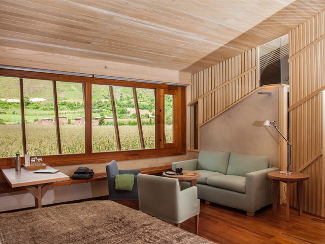 Explora Valle Sagrado is the seventh edition to the Explora hotel group and its first property in Peru. Built on an ancient corn plantation in one of the Sacred Valley’s most secluded haciendas, the property overlooks the stately mountains and verdant pastures that once belonged to the Inca Empire. The hotel’s 50 spacious rooms are arranged in four bays designed to take full advantage of the beautiful surroundings with views of the cornfields and mountains.
