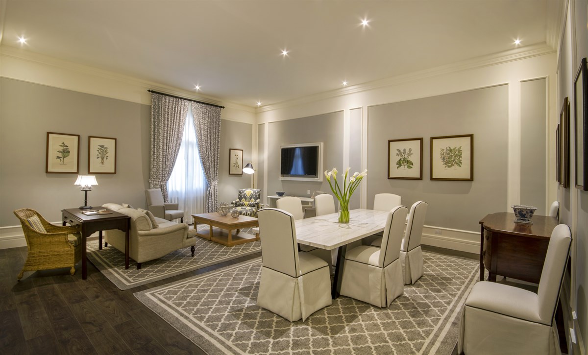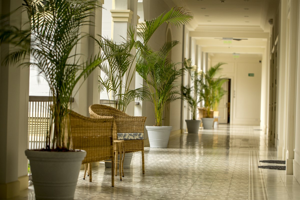 Interiors created by designer Julio Vinueza are cool and fresh, with a nod to the building’s Republican-era architectural origins