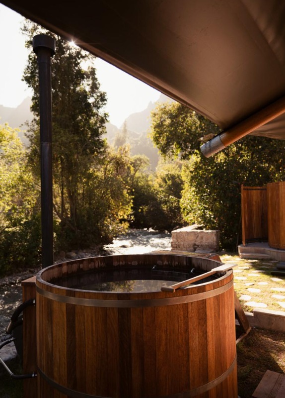An attractive feature is the wonderful spa tents offering excellent treatments and a wonderful water circuit including a Hot tub/ Onsen with a superb view to the mountains.