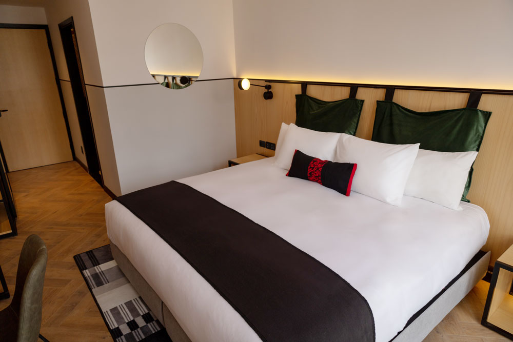 Boasting 75 bedrooms and one penthouse suite, which offers with panoramic views over La Paz and comes complete with its own art collection, the designers of this brand-new luxury hotel have been careful to honor the country’s unique identity. Modern décor pieces such as the pillows, celebrate the rich weavings from the Jalq’a culture in Southern Bolivia, and in the bedrooms, rug patterns take inspiration from local historic textiles from Tiwanaku, an ancient city in western Bolivia near the southeast shores of Lake Titicaca.