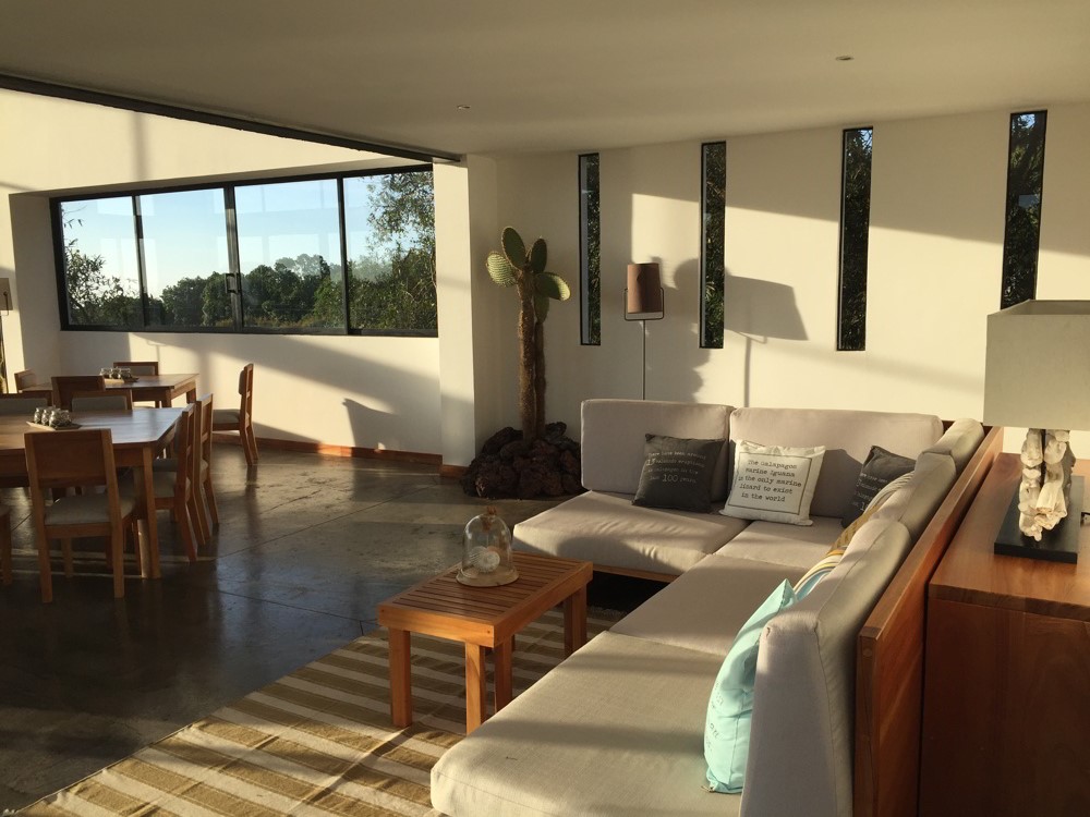 The Lodge is located in the highlands of Isabela Island, about 20 minutes from the town of Puerto Villamil. Nestled in the centre of 16 hectacres (40 acres) of property in the middle of a beautiful natural forest, the lodge boasts a spectacular view of the coast of Isabela Island and out towards the Pacific Ocean.