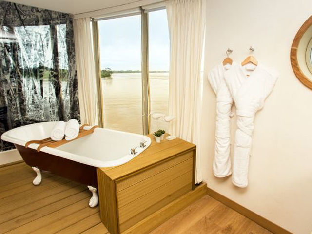 There are a total of two Corner Suites on the Delfin III, located on the main deck in the front of the ship offering fantastic views of the river and surrounds, through 90-degree floor-to-ceiling windows. Extra amenities in this cabin include a complimentary 30-minute spa treatment, stocked minibar, complimentary laundry and scented bath on request.