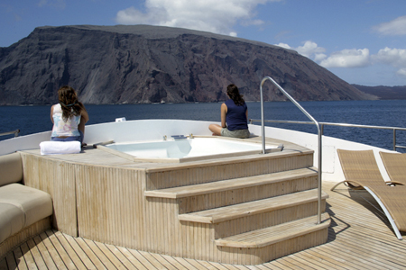 Integrity Luxury Galapagos Cruise is one of the most exclusive Galapagos yachts and the only small yacht to offer a truly luxurious experience. Each stateroom and suite sleeps two in comfort with simple, tasteful decorations and large windows that offer great views.